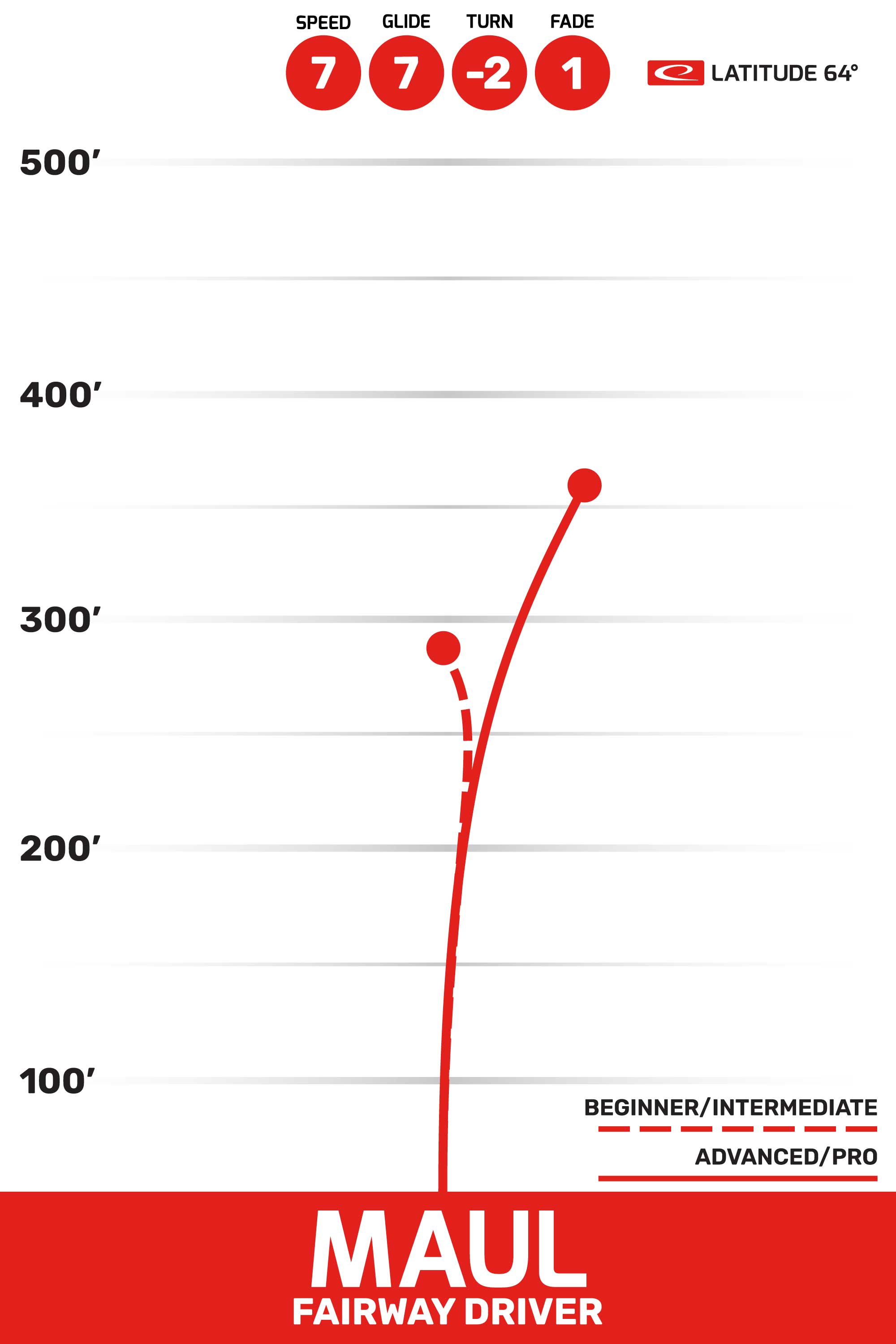 Dysk o numerach 7, 7, -2, 1, który jest idealnym wyborem dla graczy szukających dysku do rzutów na średnie i długie odległości. Dzięki stabilności -2, ten dysk jest niestabilny, co oznacza, że będzie skręcał w prawo przy pełnym locie (dla gracza praworęcznego). Ma prędkość 7, co sprawia, że jest odpowiedni do mocniejszych rzutów, a jego fade 1 zapewnia kontrolowane lądowanie. Latitude 64 Maul świetnie nadaje się do wykorzystania na długich dystansach, gdzie wymagana jest kontrola nad lotem i dokładność przy lądowaniu. Jego cechy sprawiają, że jest popularnym wyborem wśród graczy, którzy szukają większej odległości z mniejszym fade. Dysk ten jest idealny do rzutów, które wymagają bardziej złożonych manewrów, takich jak hyzerflip.