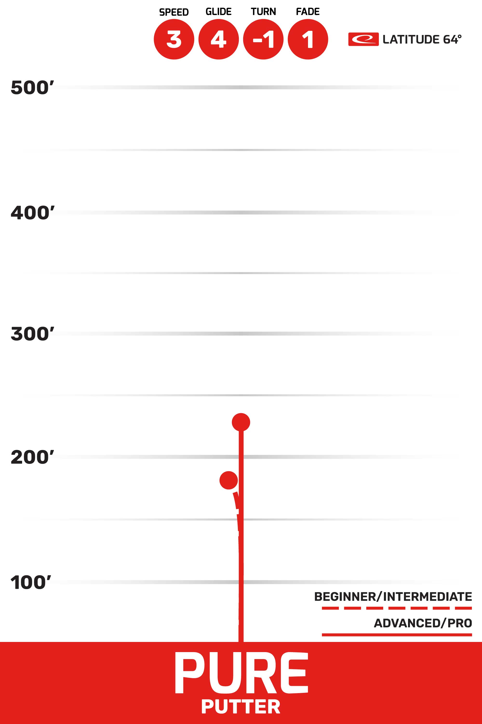 Pure to dysk putter o numerach 3, 3, -1, 1, który zapewnia doskonałą kontrolę i precyzję w każdym rzucie. Dysk ma tendencje do prostego lotu. Dzięki swojemu delikatnemu fade'owi (1), Pure jest stabilny podczas lądowania, zapewniając precyzyjne trafienia w obrębie kosza. Ten dysk to doskonały wybór dla graczy poszukujących komfortu i precyzji podczas puttów i rzutów na krótkie odległości. Jego właściwości sprawiają, że jest to świetna opcja zarówno dla początkujących, jak i średniozaawansowanych graczy, którzy chcą poprawić kontrolę nad swoimi rzutami. Latitude 64 Pure to popularny wybór wśród profesjonalnych graczy, którzy cenią precyzyjne, kontrolowane rzuty.